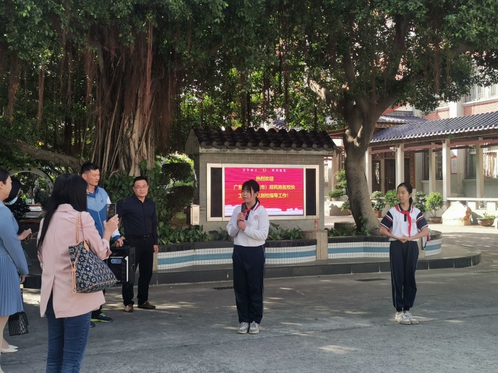 烟洲小学校长黄文华带领工作室全体成员,在烟洲小学“书院讲解团”的现场讲解引导下,参观已有148年历史的烟洲书院及烟洲小学的校园环境;大家还观摩了学校正在举办的“厨王争霸赛”综合实践活动,体验百年书院文化与现代教育的和谐融合。接着,由潘锦嫦老师介绍了“垃圾分类小达人”的课程建设,再由黄文华校长介绍烟洲小学项目式学习的实践经历。黄校长指出,项目式学习是当前全球教育创新的一个热点话题,项目式学习以项目为导向,传承、强调“做中学”和“建构主义”的教育理念,创造的学习情境以学生为核心,项目的主题要真实,学生能围绕着这些主题去探究并解决问题,从而提高学生核心素养与能力,并提出学校目前推行项目式学习中的三个困惑。