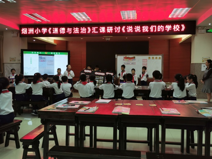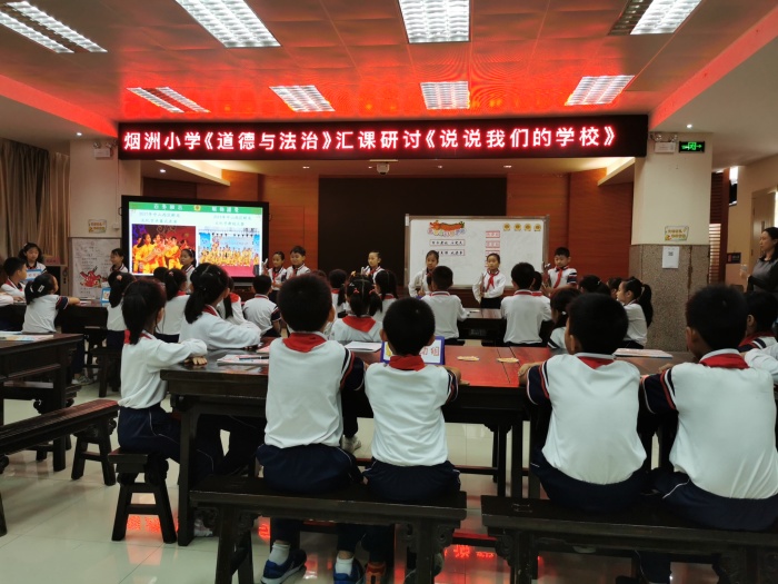 11月18日下午2:30,烟洲小学周泉老师在一楼多功能室展示了一节绘声绘色的道德与法治课——《说说星空体育的学校》,来自西区各所学校的道德与法治老师对本节课进行了学习和研讨。