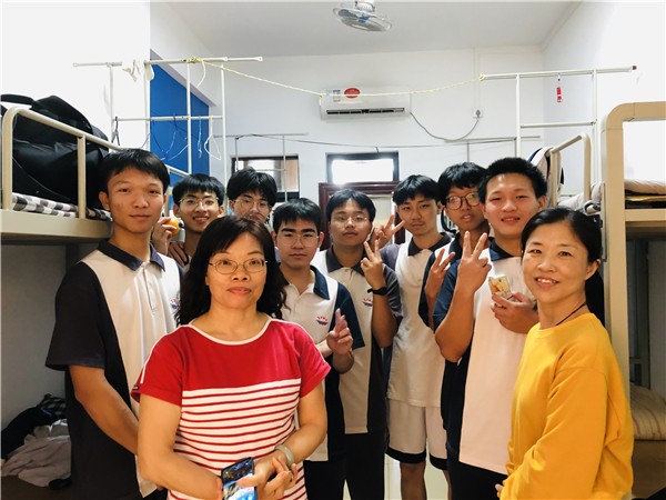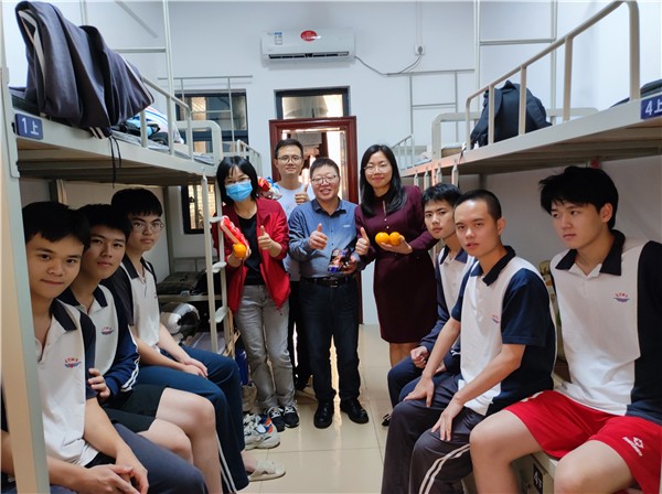 每走进一间宿舍,老师们打开大礼包,一一派发。随即与同学们亲切交谈,询问学习、生活上的状态,帮助解决难题,进行鼓励。真挚的关怀和问候让学生们备受鼓舞,有效拉进了师生距离,缓解了学生们的紧张情绪。