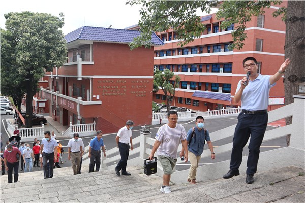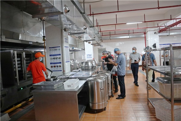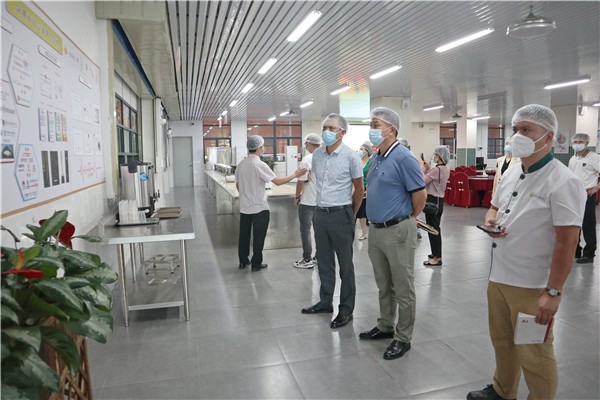 为让学习团一行初步了解学校的办学历史和直观感受校园环境,在办公室主任张建国的带领下,他们先沿着将军铜像、程度纯馆、歼5战机停机坪、西林山航空文化园、学生宿舍、运动操场的路径边走边听讲解。随后的参观食堂环节,总务处主任钟承炎负责讲解。从学生食堂、教工餐厅到加工后厨,这里宽敞明亮的就餐环境、丰富营养的菜品样式、暖心周到的服务、完善齐全的设施设备、科学精细的管理模式……让学习团一行留下深刻印象,并纷纷点赞。