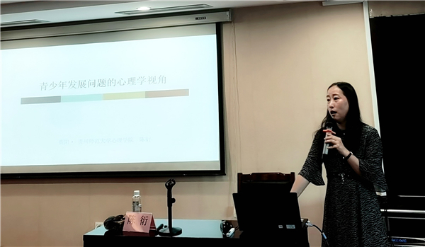 陈教授通过“初一女生的躯体化心理问题、高一的焦虑女孩、强迫症大学生”等丰富的案例,让老师们认识到压力对青少年学生产生的巨大影响。同时,她还进一步阐述了青少年心理发展的特征和当前青少年的成长环境。陈教授通过活动和案例充分激发了老师们的学习兴趣,也让大家正确认识了青少年学生的心理状况。