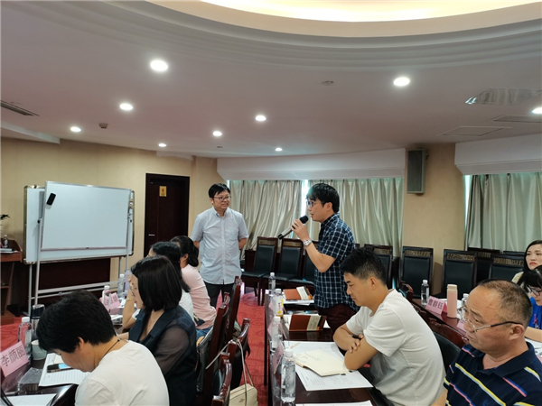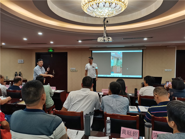 课堂上,学员们认真聆听并积极回答许亮教授的提问。刘朝晖校长为了增加学员们对教育技术的理解,上台配合许亮教授的课堂教学环节。