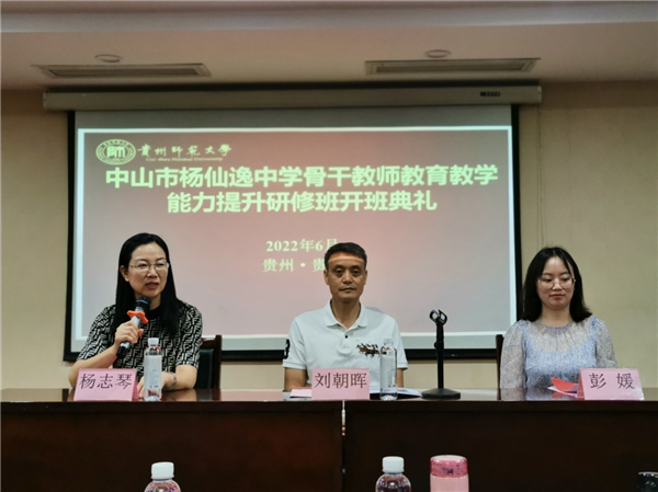 中山市杨仙逸中学刘朝晖校长首先代表此次受训成员对贵州师范大学的热心接待表示衷心感谢。其后,他指出“教师的教育教学质量就是仙中的生命保障”,对成员们提出“认真对待,不费生命,珍惜机会;不忘学习初心,牢记教学使命”的严格要求,并希望大家能传承和发扬“虚心求教、善于探究、研以致用”的仙中人品质。