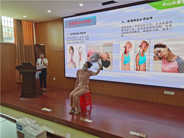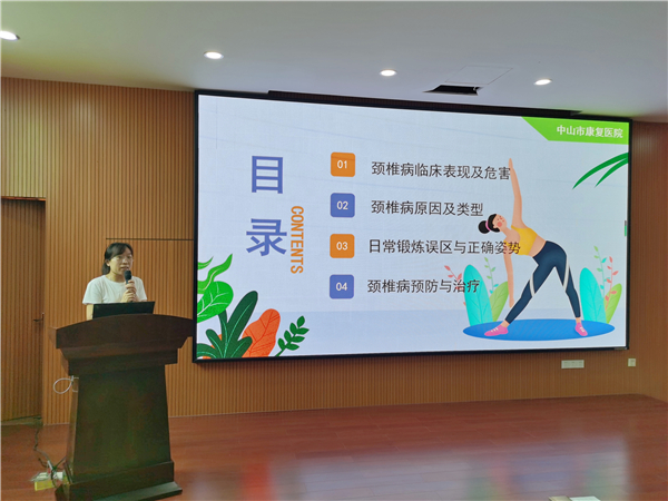 她还结合日常生活提出了一些科学预防颈椎病的措施,如端正坐姿、保持正确睡眠姿势、常做活动操、保证30分钟工作间歇等,并特别提到健身功法八段锦的锻炼,希望老师们可以提高认识,注重平时保养,增强个人体质,帮助缓解疼痛预防颈椎病。