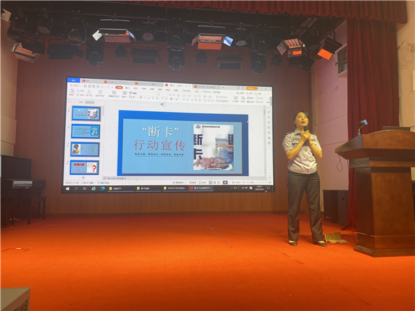 石岐公安分局侯警官也为同学们带来了“断卡”行动宣传主题,让大家知道防诈骗的重要性。他指出,当前网络诈骗的形式多样,有着不同程度的剧本,不同群体都存在着被骗的风险。青少年学生正处于未成年人阶段,社会阅历少,考虑问题单一,更需要提高防诈骗意识,特别是手机卡、银行卡,切忌随意交给陌生人使用。
