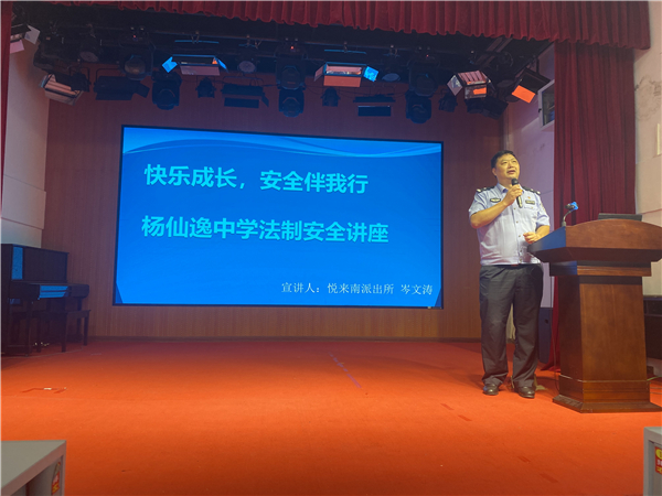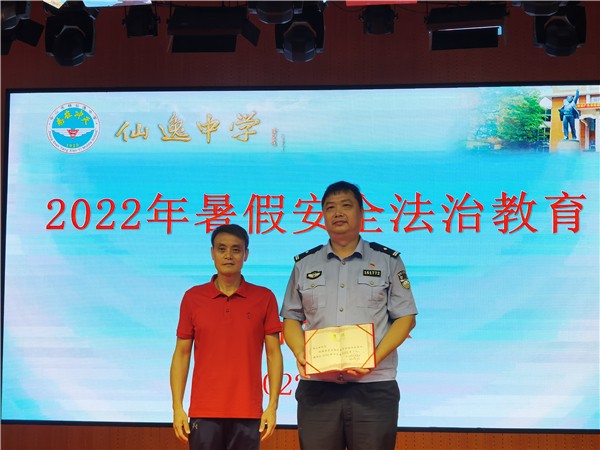 暑假即将来临,为了提高学生们的假期法制安全和自我防护意识,度过一个平安、健康、快乐的暑假,7月5日下午,我校邀请石岐街道公安分局悦来南派出所民警干部,以现场讲座和直播的方式召开全校散学礼暨暑假安全法制教育,学校党总支书记刘朝晖校长和德育处主任张秀芬出席了活动。