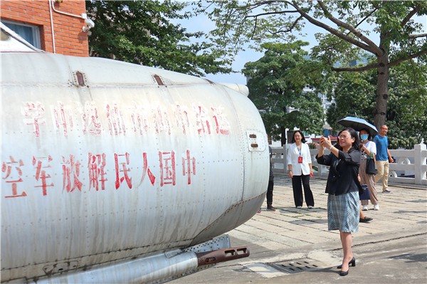徐小莉一行实地了解学校近年来的环境改造工作成效。大家先后参观了芳华园、西林山航空文化园、百草园等校内景观,并在歼五战机旁欣然合影,为焕然一新的校园面貌集体点赞。随后,他们走进宿舍和饭堂,详细了解学生在校食宿情况。