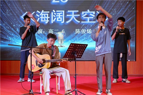 音乐响起,选手轮番上场,深情演唱,表现得从容淡定。曲目类型丰富,风格各异,民谣、摇滚、说唱、古风乐交替上演。比赛用独唱、合唱、吉他弹唱多样式演绎。一首首耳熟能详的校园歌曲,一阵阵掌声雷动,一声声喝彩助威,表现了仙中学子积极向上,青春洋溢的姿态。还有不少颇具台风的选手,热情地和观众进行挥手互动,活跃起现场气氛。