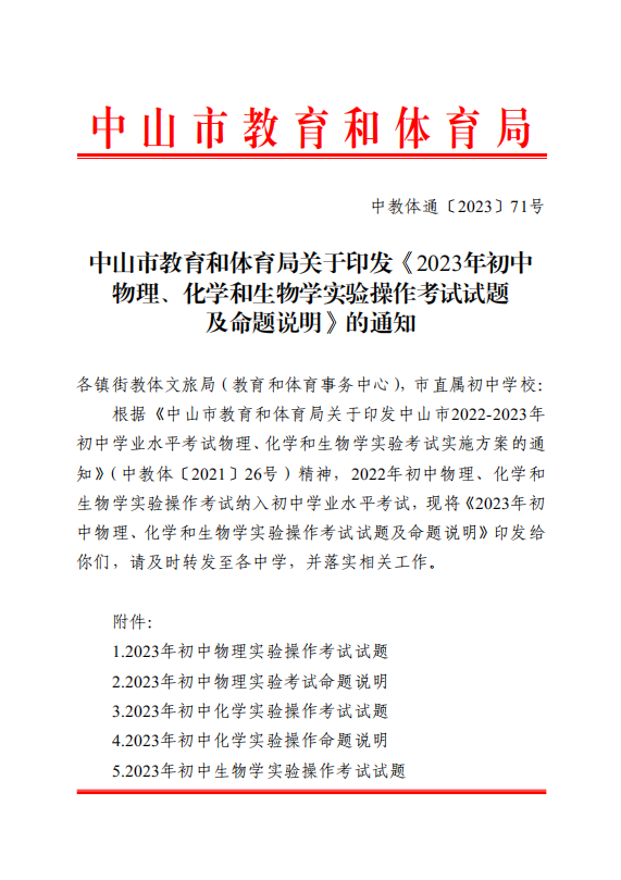 2023通71-关于印发《2023年初中物理、化学和生物学实验操作考试试题及命题说明》的通知
