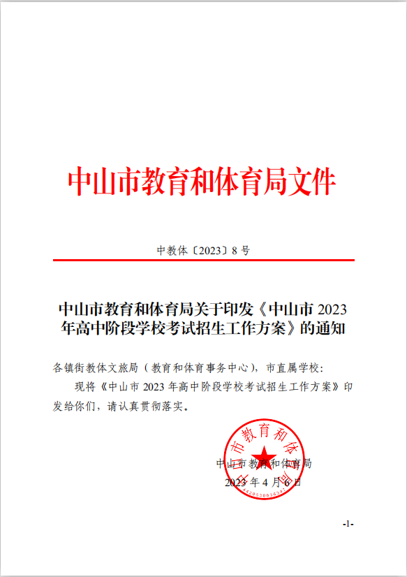 附件:2023中教体8-关于印发《中山市2023年高中阶段学校考试招生工作方案》的通知.pdf
