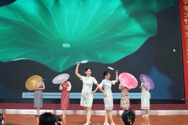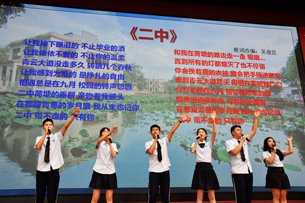 学生献唱歌曲毕业纪念歌曲《二中》,倡议成立2022届校友联谊会,延续师生之情,共话同窗之谊。最后一个环节,教师给学生们一份礼物——《一起HAPPY》,一群气质独特的老师穿上优雅的旗袍走上舞台给高三毕业学子带来了一场精彩绝伦的视觉盛宴;一群年轻漂亮的教师给献上了活力四射的《爱你》舞蹈表演;一群成熟有魅力的领导老师呈上一次幽默风趣的T台走秀;一群嗓音动听迷人的老师给同学们献上了一曲《一路顺风》;还有一群可爱贴心的老师给送上了暖暖的祝福。校长跳舞、“牛仔”走秀,旗袍送别、《爱你》舞蹈……亮点频频,爱意满满,只为送给2022届高三毕业生一个难忘的毕业典礼!