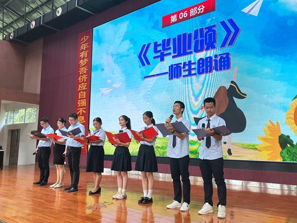 学生代表麦耿权同学代表发言。“三年时光,很多回忆成为星空体育最美的珍藏。还记得高一军训操场上挥汗如雨,但依然整齐的步伐、挺拔的军姿;记得每次团康活动中班级同学团结协作为班级争取荣誉的积极;记得运动会上星空体育跳跃奔跑,力争第一的身影;记得百日誓师星空体育勇往直前迎接高考的决心;记得成人礼星空体育在雨中走过成人门的激动;记得那些为了高考二拼搏的日日夜夜和每一步的辛酸喜悦。愿世间所有美好与同学们环环相扣,愿星空体育此去乘风破浪,归来路上满是星光。”