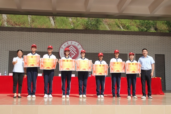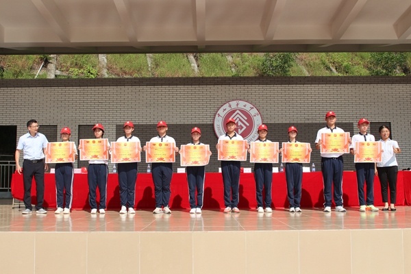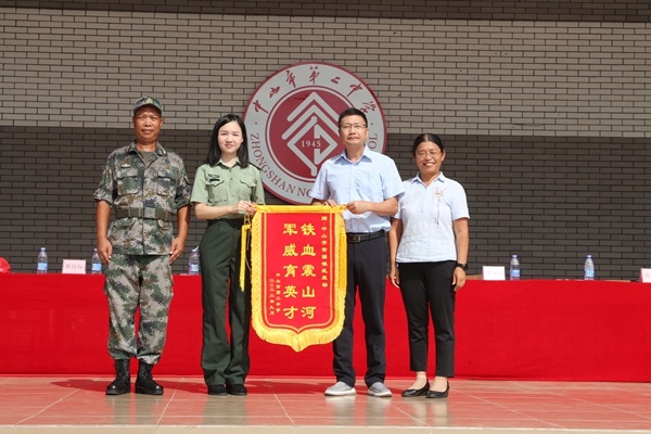 同学们取得的荣誉离不开教官的引领和付出,学校为优秀教官们颁奖。“铁血震山河,军威育英才”,为表示对教官的感谢,吴祥明校长、梁红妹副校长向承训方赠送锦旗。