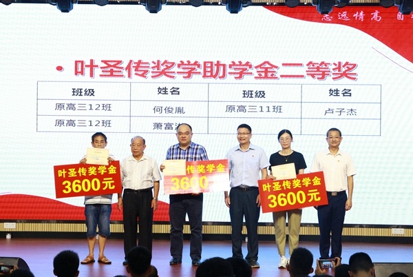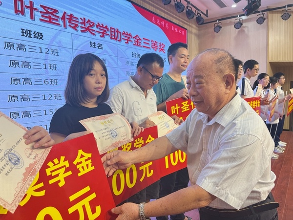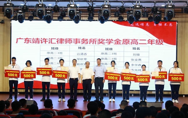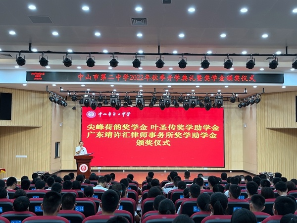 本次颁奖合计发放各类奖学金10.4万元,将有149名师生获得200-3600元不等的奖学奖教金。在历年捐资奖教奖学助学金共计99万元的基础上,2022年,叶氏家族叶家仁先生捐资设立第五期“叶圣传奖教奖学助学金”,每年捐资人民币5万元,为期三年,总计15万元。叶圣传先生,中山市第二中学前身(中山县九区中学)首任校长叶国尧先生的父亲。黄圃镇名医,一贯热心公益、悬壶济世、倾情教育,为世人称道。为弘扬叶圣传医师的优良品德,叶圣传先生后辈叶家仁先生设立以叶圣传先生冠名的“叶圣传奖教奖学助学金”。“叶圣传奖教奖学助学金”发起人、中山市黄圃镇归国华侨联合会副主席张金城先生为学子颁奖。为支持中山二中教育事业的发展,感恩母校的培养之情。1998届高三1班校友王靖远律师等拟于2022年起捐资设立“广东靖许汇律师事务所奖学金”。每学年开学前发放2万元奖学金。首期五年,合计10万元,以后还将继续。每年奖励40名品学兼优的学生,每人奖金500元。1998届高三1班校友王靖远律师为学子颁奖。