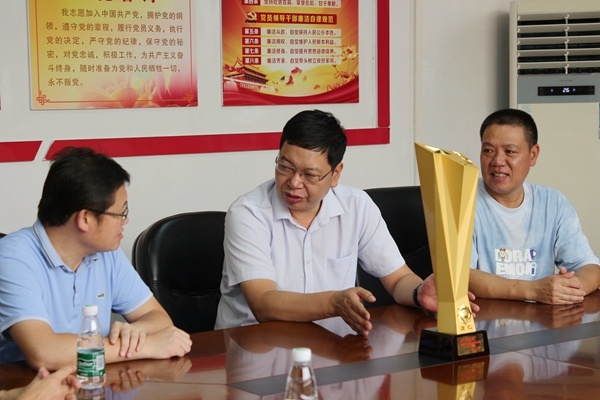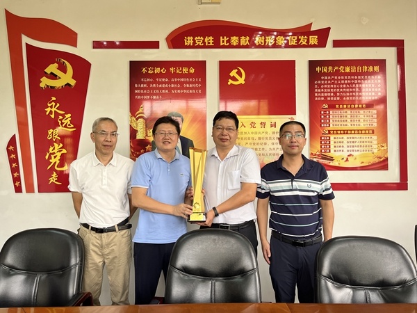 2022年9月20日上午,作为优秀项目经理,带领团队参与建设高速公路工程荣获“詹天佑奖”“李春奖”“国家优质工程金奖”等建筑大奖的1991届优秀校友周浩恩同志,回访母校中山二中,向母校捐赠“国家优质工程金奖”奖杯。学校副校长侯志坚、工会主席刘朝晖、校友联系负责人李俊文主任、冯定和老师与周浩恩校友开展座谈会。