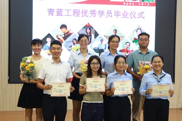 青蓝结对,互助共赢。欧阳珊副主任指出青年教师是学校的未来和希望。学校一直十分重视青年教师的培养,特为新教师们安排了优秀的骨干教师作为导师,以更好地促进青年教师专业化成长。经过三年磨练,李宁老师等4位青蓝工程优秀学员顺利毕业。