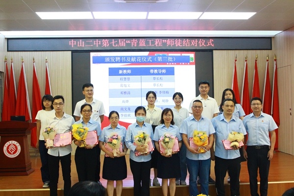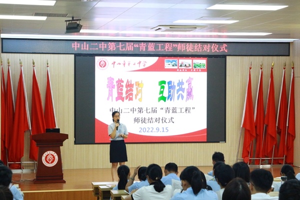 为落实以人为本的教育观,实践“善”文化特色,加快青年教师的成长步伐,发挥学校骨干教师的示范和辐射作用,2022年9月15日,中山市第二中学举行2022-2023学年度“青蓝工程”师徒结对仪式。此次活动由教科室欧阳珊副主任主持,参加本次结对仪式有:校党委书记、校长吴祥明,副校长王曙东,副校长梁红妹,教务处、年级部中层行政,全体带教导师和新教师。