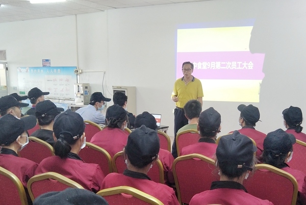 会议开始,总务处粟深知主任在会议上强调要高度重视食品安全和卫生,要求食堂从业人员要规范操作,落实岗位职责,细心细致工作,用心用情服务,守护师生舌尖上的安全,为迎接秋季开学食堂A级复评做好准备。