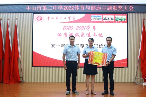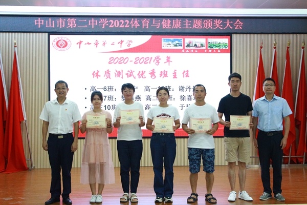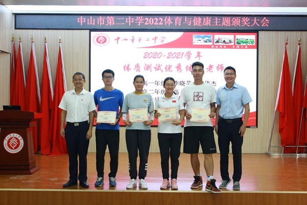 秋风送爽,硕果摇曳。新学年,9月7日,中山二中举行了“中山市第二中学2022年体育与健康主题颁奖典礼”。学校领导班子吴祥明校长、王曙东副校长、梁红妹副校长,教科室欧阳珊副主任,全体德育行政和年级部长,以及全体班主任、体育科组全体老师出席了颁奖典礼。