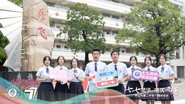 中山市第二中学创办于1945年秋,前身是中山县第九区中学,历经广东省中山农校到中山县师范学校的变迁。当天,77周年校庆宣传片——《七七风华 求实向善》震撼发布。