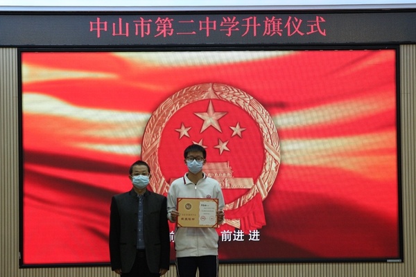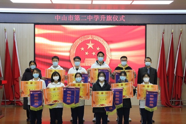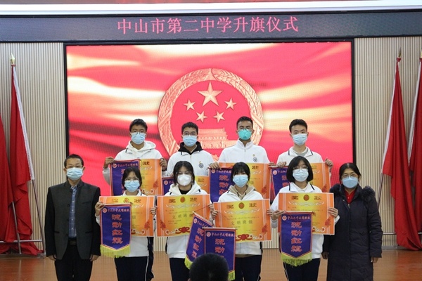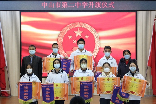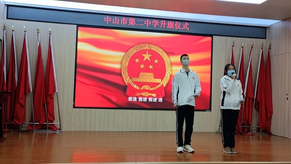 12月12日清晨,中山二中于阶梯室开展本周升旗仪式,国旗班同学手持国旗,列队进场。鲜红的国旗,伴随着雄壮的国歌声,升旗仪式庄严而神圣。高三12班两位同学作《学习宪法,做守法公民》的国旗下演讲。