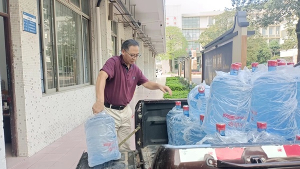 做好校园内的物资供保工作,总务处本着“保障教学,服务师生”的原则,及时搬运遮阳伞,撑起通道,应对可能面临的降雨天气;保障校园内桶装水储备。