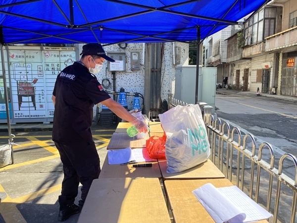 由于冷空气南下影响我市,中山市的气温急剧下降,最高气温只有17度,夜间最低温度只有9度,黄圃镇又是疫情封控的特殊时期,面临这一次大考验,二中校领导时刻关注师生需求,高度重视,召开紧急会议,全面动员,积极部署,迅速行动,后勤保障人员克服各种困难,化身为校园战疫行动中一个个忙碌的身影。温未降,爱先行。因此学校积极联系市委市政府以及邮政,开通绿色通道,学生家长可给学生寄来衣服、被子或常用药品,教师可让家人寄送生活物资。班主任们连日来紧急摸排班级同学们缺少衣服、棉被的情况,调查家长寄送衣物的情况。在总务处的安排下,学校安保人员严格落实加强各项疫情防控工作,学校大门封闭,外来物资统一先放在第一道闸门桌子上放置一定的时间后,由保安戴口罩和手套进行消毒之后将物品进到学校校道的桌子上。