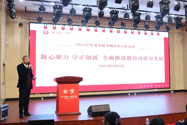 春风催桃李,扬帆启新程。为了确保新学期各项工作有序、有效开展,2023年2月5日上午,中山市第二中学在报告厅召开2023年春季学期开学教职工大会,会议由办公室主任王友福主持。