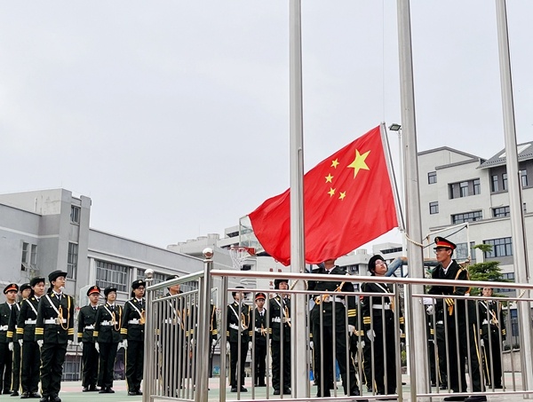 3月20日清晨,中山二中于体育场开展本周升旗仪式,国旗班同学手持国旗,列队进场。鲜红的国旗,伴随着雄壮的国歌声,升旗仪式庄严而神圣。高一5班两位同学作《预防校园欺凌,建设和善校园》的国旗下演讲。