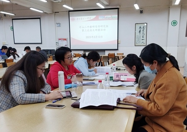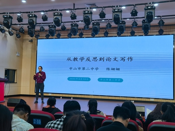 2023年3月13日晚,中山市第二中学报告厅内灯光明亮,教研氛围浓厚。在学校领导的大力支持下,中山市第二中学写作组开展了第六次教学论文研磨活动。本次活动由学校教科室欧阳珊副主任主持,中山市青年教师领军人才中山市第二中学陈姗姗老师进行专题讲座,中山市写作组专家老师对论文进行点评和指导。学校写作组成员、青年教师们满怀学习热情,积极参加了本次学习活动,感到收获满满。