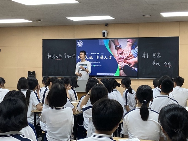 4月20日上午,中山市第二中学在实验楼录播室开展了《和谐人际,幸福人生》主题班会观摩课。该节班会课由计世光老师主持。计世光老师以一个猜字游戏导入,从甲骨文“朋友”二字的本义说起,引起了同学们的兴趣。接着,他通过朗读人际关系的名人名言、呈现社会主义核心价值观、分享案例,让同学们体悟人际关系的重要性。立足学生实际,引出高中生人际交往过程的常见问题以及应对原则和技巧——尊重、宽容、真诚、合作,即“做好自己,释放善意”。计老师通过视频呈现、容忍度测试、吐嘈大会、期评成绩、最美二中宿舍、校运会的故事等环节,将课堂一步步推向高潮,同学们深受激励,在场听课的老师也多次叫绝。班主任是班级的组织者和管理者,同时,也是全面负责一个班学生的思想、学习、健康和生活等工作,班主任的工作决定着德育工作的质量。此次经验交流会为德育工作者搭建了一个互相交流、互相学习的平台,在轻松、融洽的氛围中给大家带来了许多启发和收获,为我校德育工作扎实有效的开展起到了积极的促进作用。