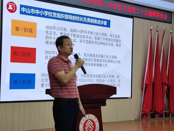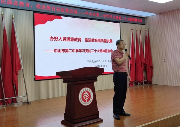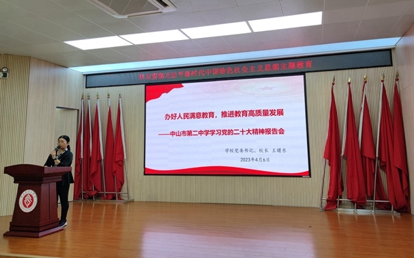 4月6日下午,中山二中全体党员在阶梯室开展主题党日活动,活动由党委副书记、副校长梁红妹同志主持。