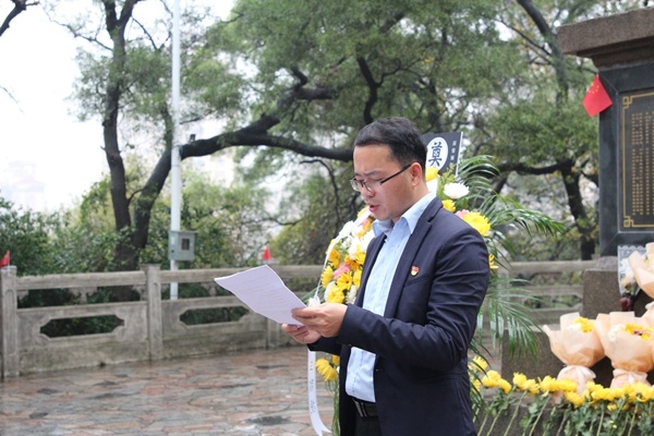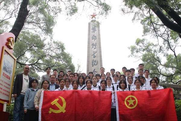 2023年3月31日下午,中山二中40余名优秀团学干部在校党委委员、德育处主任李灿泽老师,第四党支部书记冼春明老师、校团委书记汤秀兰老师、高一年级团总支书记冯澳文老师和团委陈晓琳老师的带领下,徒步赴黄圃镇花果山革命烈士陵园祭奠革命英烈。