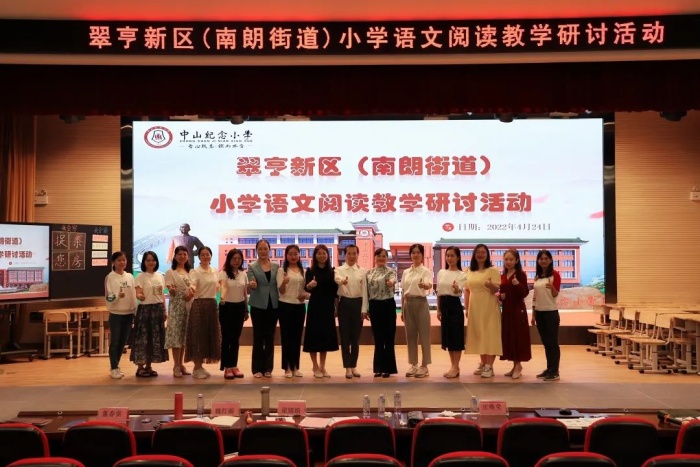 芳菲四月,花竞相盛放,年轻教师,同课异构魅力绽现。为探讨小学语文低年段阅读教学路径,突破识字写字重难点,促进教师专业化成长,提高课堂教学质量,2022年4月24日下午,南朗街道小语中心组成员、各小学一二年级备课组长齐聚中山纪念小学报告厅,特邀请中山市名师前来指导,开展同课异构暨专家讲座研讨活动。活动由中山纪念小学易脉老师主持。