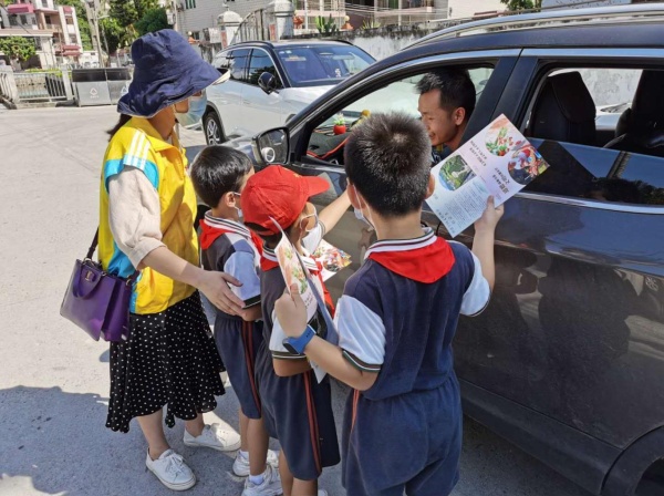 接着,志愿者服务队分成十五组,由每位党员、教师带领两至三组家庭,前往小区为群众派发创建文明城市宣传单和“垃圾分类,从我做起”倡议书。整个活动中,志愿者们积极参与、文明有礼,走进大街小巷,为群众耐心讲解,热心宣传,得到大家的认可和支持。