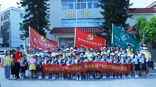 为助力中山创建文明城市,发动师生、家长为创文工作贡献力量,发扬志愿者服务精神,2020年7月19日上午9:00,中山纪念小学党员、教师志愿者、亲子义工服务队前往海滨社区珊洲小区开展创文入户宣传志愿活动。