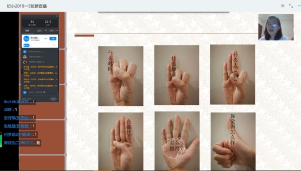 5月8日晚7:30,两校老师在线上相聚一起,首先,中山纪念小学张月明老师执教一年级看图写话直播课。张月明老师的课堂勇于创新,设计符合学情,先用生动有趣的手指操引导学生记住打开写话大门的“六把钥匙”,再现场连线,让学生观察相片,大胆表达,学生踊跃发言,课堂氛围融洽,师生配合默契。张老师借此鼓励学生要留心观察生活中的事物,把所见所闻大方、流利地表达出来,再转化为文字落实到写句子、写话中去。