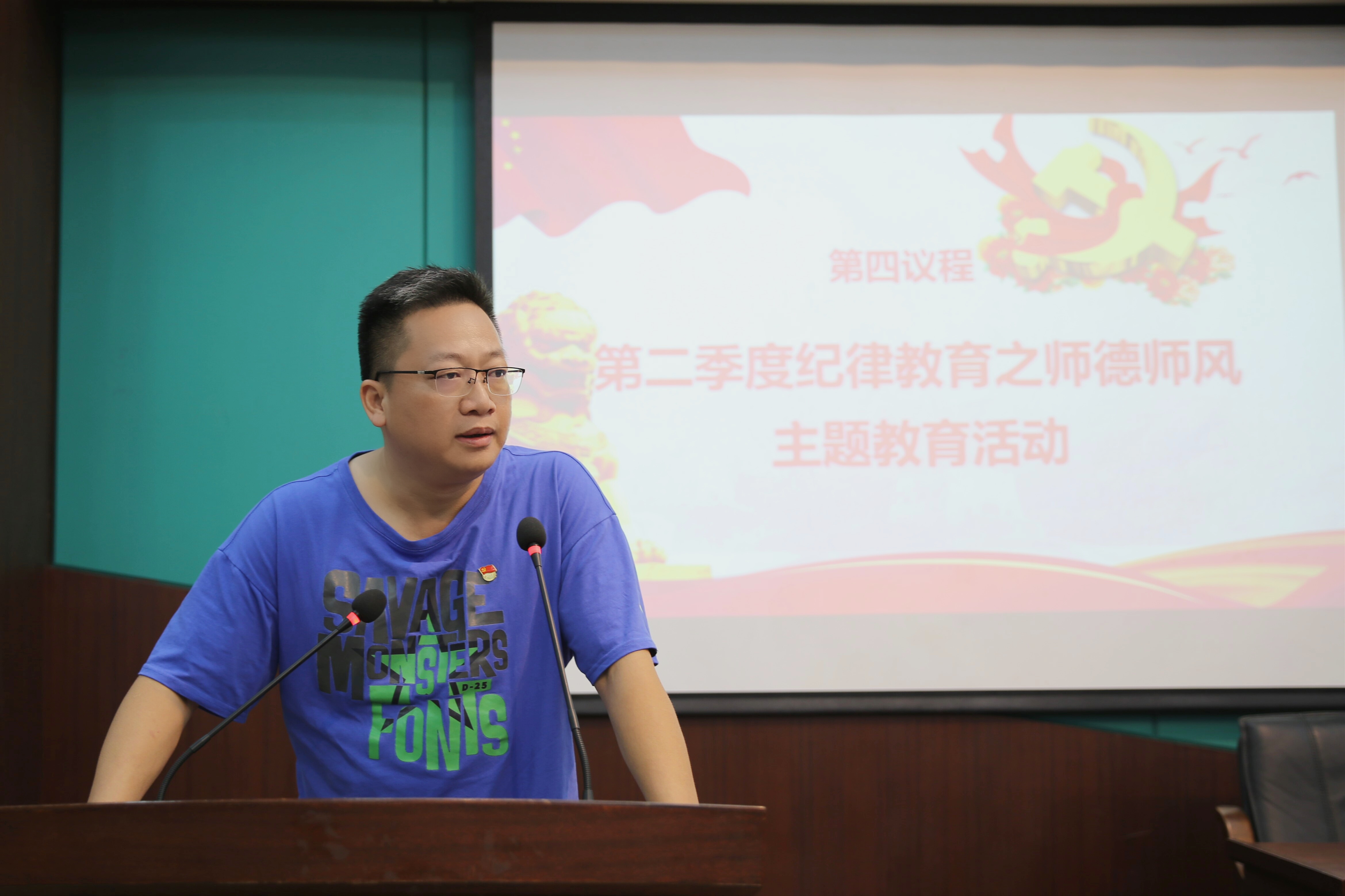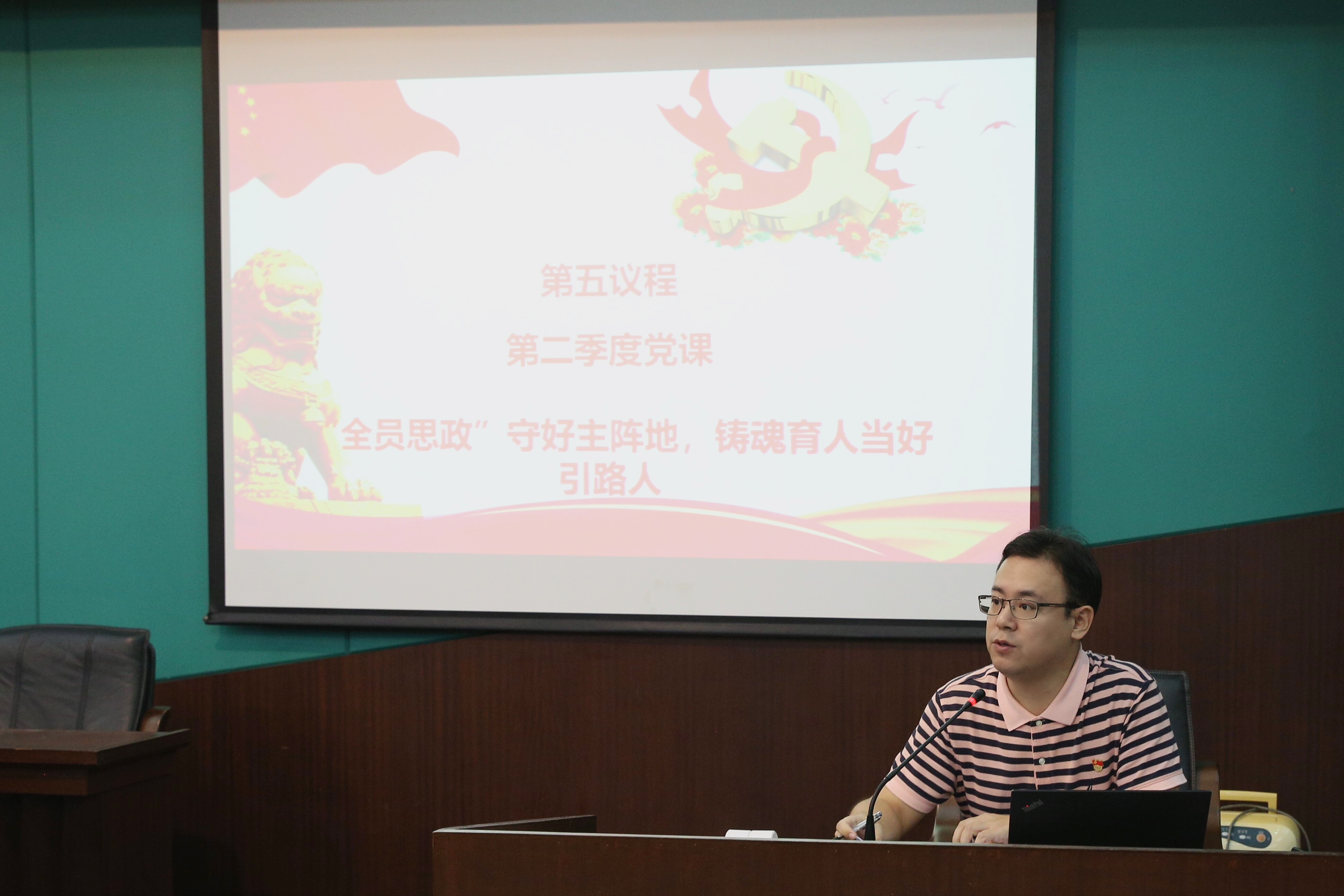 6月14日,综合党支部在高三报告厅召开了支部党员会议,讨论确定了谭伟锋为入党积极分子。会议还进行了第一议题学习,开展了第二季度党员纪律教育,并聆听了校党委委员葛焱同志带来的题为《全员思政守好主阵地铸魂育人当好引路人》的党课。由支部书记于大泽同志主持会议。