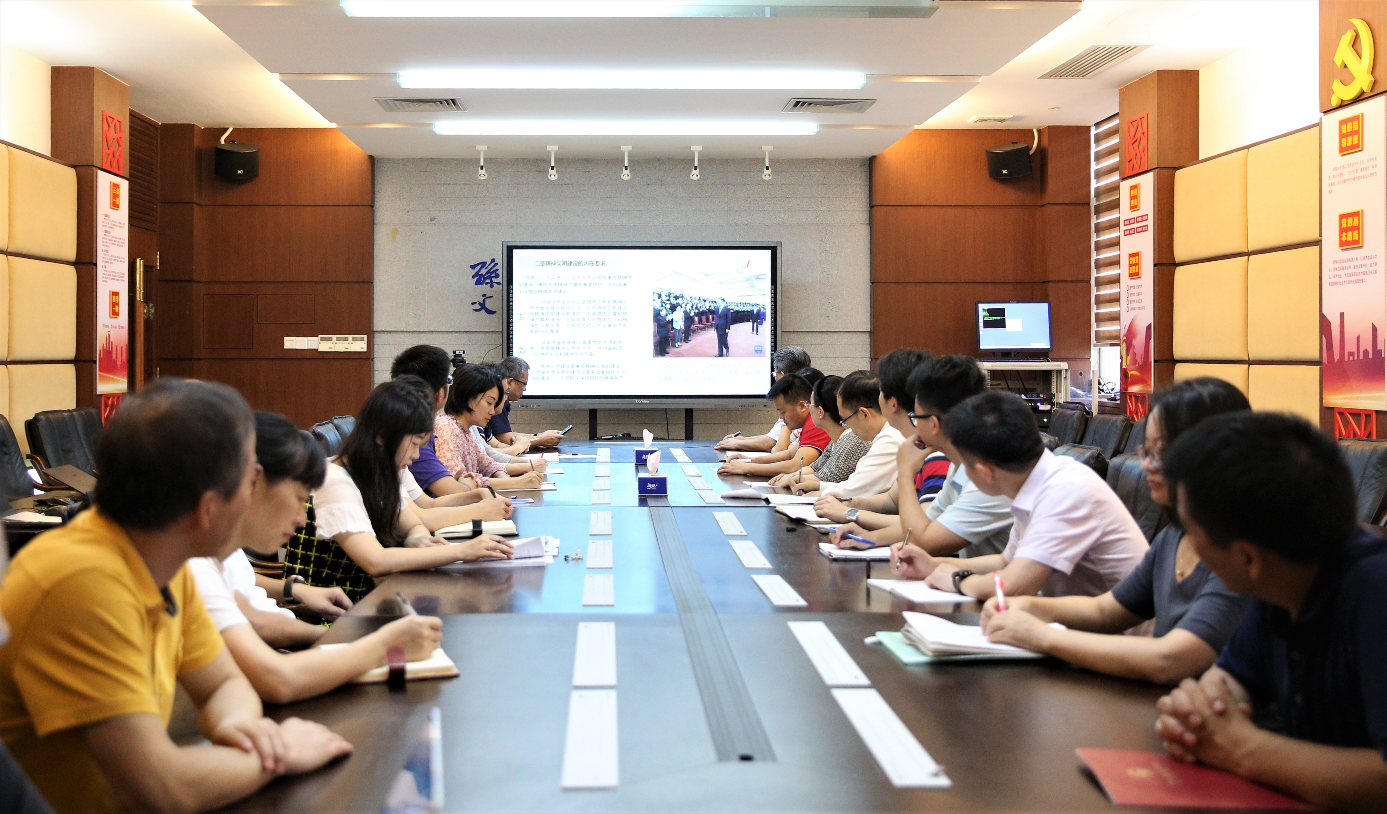 市教育工委、市教体局班子成员,局机关全体干部,局属事业单位负责人,市直属学校(幼儿园)负责人,各镇街教体文旅局、教育体育事务中心有关负责人参与了会议。中山纪念中学行政干部在校友楼一楼会议室观看线上直播。