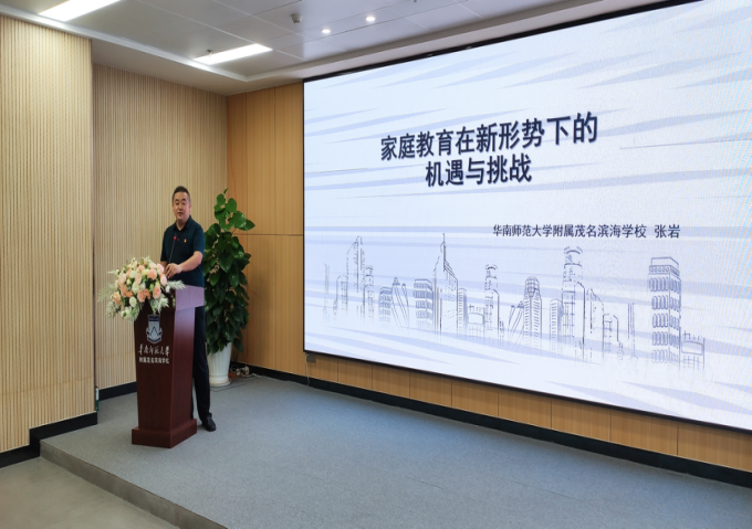 茂名滨海华附学校执行副校长张岩热情接待并带领各工作室成员参观了校园。随后,张岩执行副校长作以《家庭教育在新形势下的机遇与挑战》为题的精彩讲座。张校长从《家庭教育法》的诞生及其诞生的必要性、总体思路、主要内容以及实施给大家上了一堂生动的普法课。讲座结束后,大家移步会议室举行专题座谈会。各名班主任工作室相关负责人结合个人经验、成功案例等互相分享交流家校共育的成果和经验。座谈交流在热烈融洽的气氛中结束。