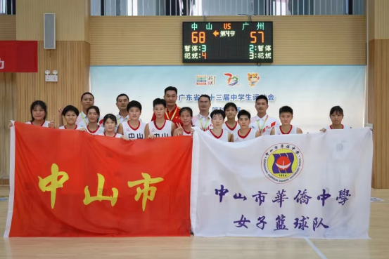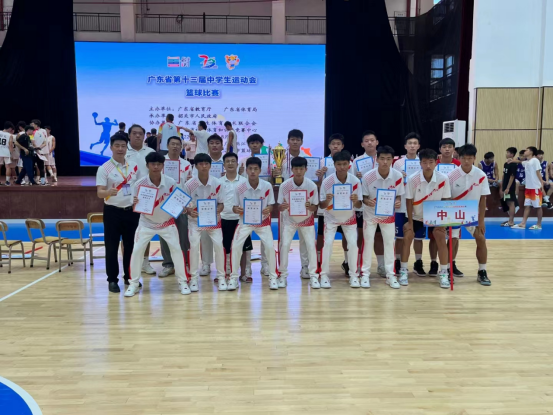 我校女子篮球队(主教练:杨辉东;助理教练:钟海春)代表中山市参加女子篮球项目,荣获本次比赛的季军,为中山市代表团增添1铜,再创我校女篮在省中运会中的最好成绩。我校参赛女篮运动员有王嘉晴、邓婉茹、李昕孺、杨晓雯、李晓彤、唐岚、何梓瑜、朱幸怡、黄泳妍、江钰婷。