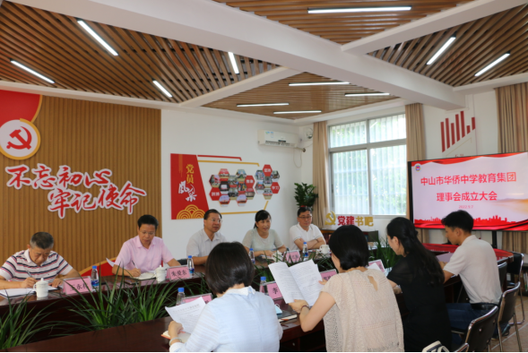 会议首先宣布成立中山市华侨中学教育集团理事会,随后审议并通过中山市华侨中学教育集团理事会理事长、理事以及集团办公室主任名单,审议通过《中山市华侨中学教育集团章程》、《中山市华侨中学教育集团专项经费管理办法》。