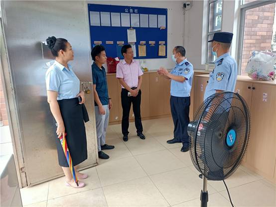 当天下午,在我校副校长朱爱东、分管安保工作的总务处副主任任俊岭的陪同下,陈所长一行实地查看了校警卫室、安保物防器械、一键报警系统和饭堂等,并针对我校安保工作提出了一系列指导意见。