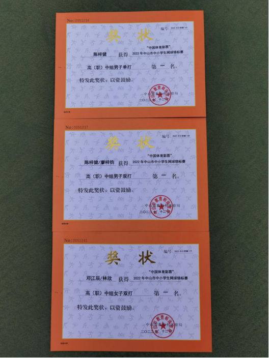 12月11日,由中山市教育和体育局主办的2022年中山市中小学生网球锦标赛在兴中网球场落下帷幕。该赛事是我市最高级别的中小学生网球赛事。来自全市44所学校的近260名运动员报名参加本次比赛。我校网球队在教练员崔龙吉和谢俊东的带领下,勇夺高中组男子单打、男子双打、女子双打三项冠军,实现历史性突破。