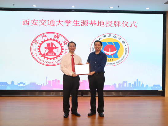 西安交交通大学授予我校“优质生源基地”牌匾