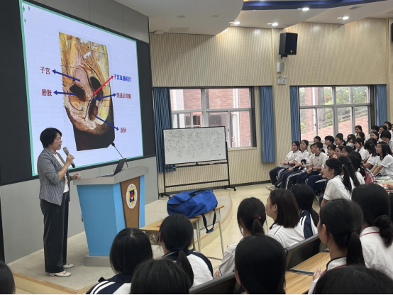程娜主任根据同学们当下的年龄和心理特点,以轻松诙谐的方式引入主题,带着同学们从“认识自己的身体”开始,围绕“身体卫生保健”“女生生理期如何护理”“如何选择合适内衣”等话题,结合临床实例,向同学们宣传普及青春期卫生保健知识。程主任还指出,同学们可以通过科学的知识多了解自己,正确处理好与同学、与异性的关系,把握好交往的尺度,在交往中学会保护自己,真正做到自爱、自立、自强,让自己的青春绚丽飞扬。