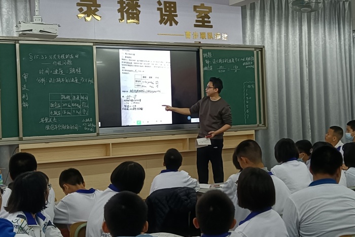 为进一步推进“未来课堂”项目建设,提高教师对“未来课堂”的认识和理解,促进教师之间相互学习和交流,曹步初级中学于2021年12月23日拉开了“未来课堂”展示课的序幕。语文和英语科组已分别派教师代表给大家做了精彩地展示。29日上午第二节,数学科组盘林玮老师在录播室给大家带来了一节精彩的数学课——《分式方程的应用——行程问题》。参与这次听课的老师有学校领导、未来课堂团队全体成员及其他学科老师。