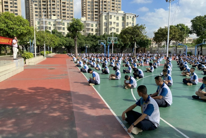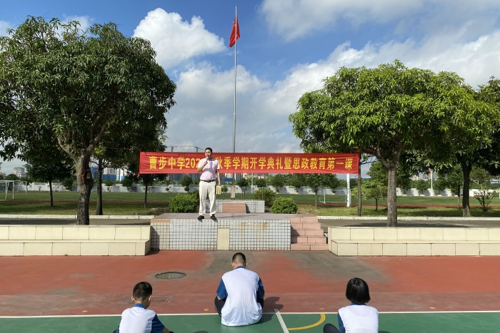 为了让全体同学养成良好的行为习惯,尽快融入新学期的校园生活,曹步初级中学于2021年9月2日早上召集全体同学在篮球场开展了一次纪律教育活动。本次活动由德育主任邓妃弟主讲,全体师生参加了此次活动。