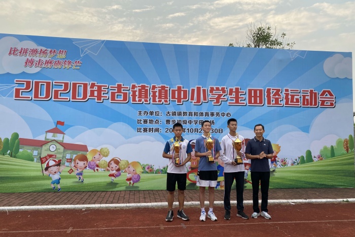 为迎接古镇镇一年一度的中小学生田径运动会。曹步中学体育组充分做好学生的思想工作,以饱满的精神姿态,以迎接2020年镇中小学田径运动会的召开。体育组协同作战,经过2天的努力拼搏曹步中学田径队荣获团体总分第三名。