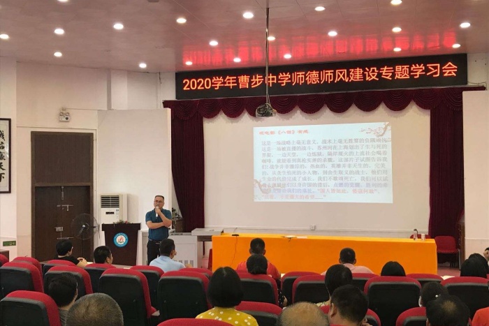为进一步提升学校教育教学水平,加强教师队伍建设,8月31日,曹步初级中学在报告厅召开了以“做‘四有’好老师,培‘五育’全新人”为主题的2020学年师德师风建设专题大会,曹步中学全体教师参加了会议。